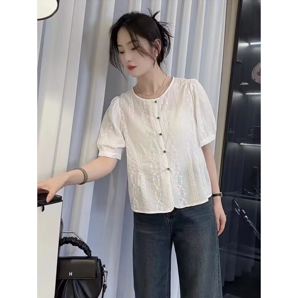 Women's Short Sleeve Embroidered Shirt
