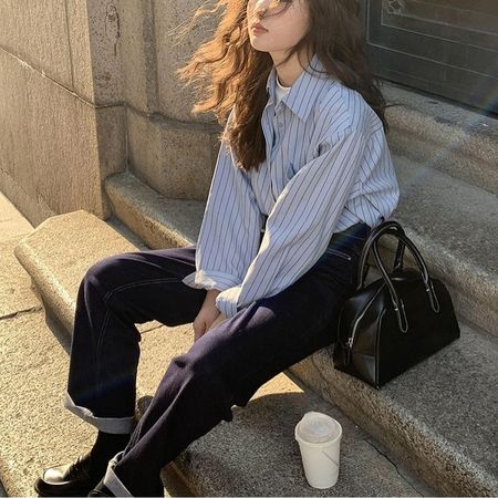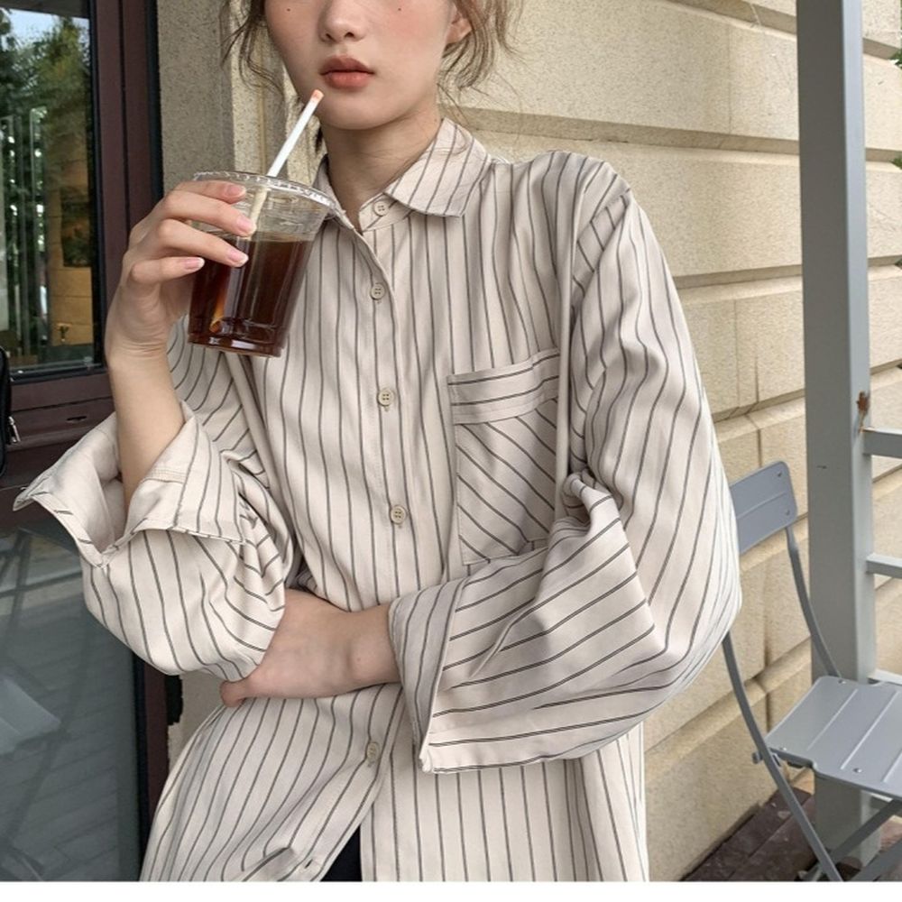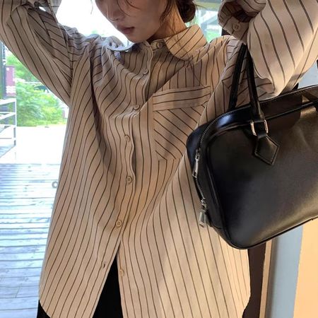 Striped Patch Pocket Shirt Women's Autumn Loose Casual Long Sleeve Top